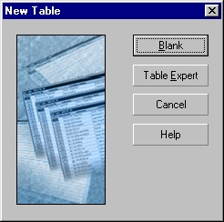 Při »ručním« vytváření tabulky volíme např. z menu File, New, Table... V dialogovém okně New Table, které se zobrazí, odklepneme tlačítko Blank (viz obr. 2-121 na následující straně).