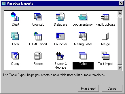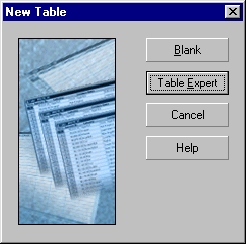Jak ale spustit tabulkového experta? Existuje několik cest. Při vytváření nové tabulky můžeme v dialogovém okně New Table (viz obr. 2-104 na následující stránce) zvolit tlačítkem Table Expert spuštění tohoto experta.