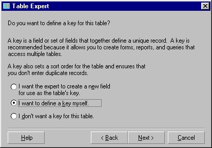 Druhou možností je volit klíč sami - vybereme I want to define a key myself. Objeví se nové dialogové okno, ve kterém položky klíče určíme.