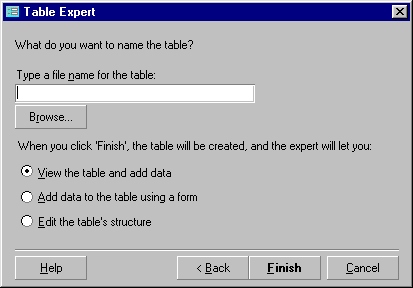Tabulka se vytvoří podle našich zadání, ale Paradox umožňuje ve spodní části posledního dialogového okna experta určit, jak se má po vytvoření tabulky pokračovat.